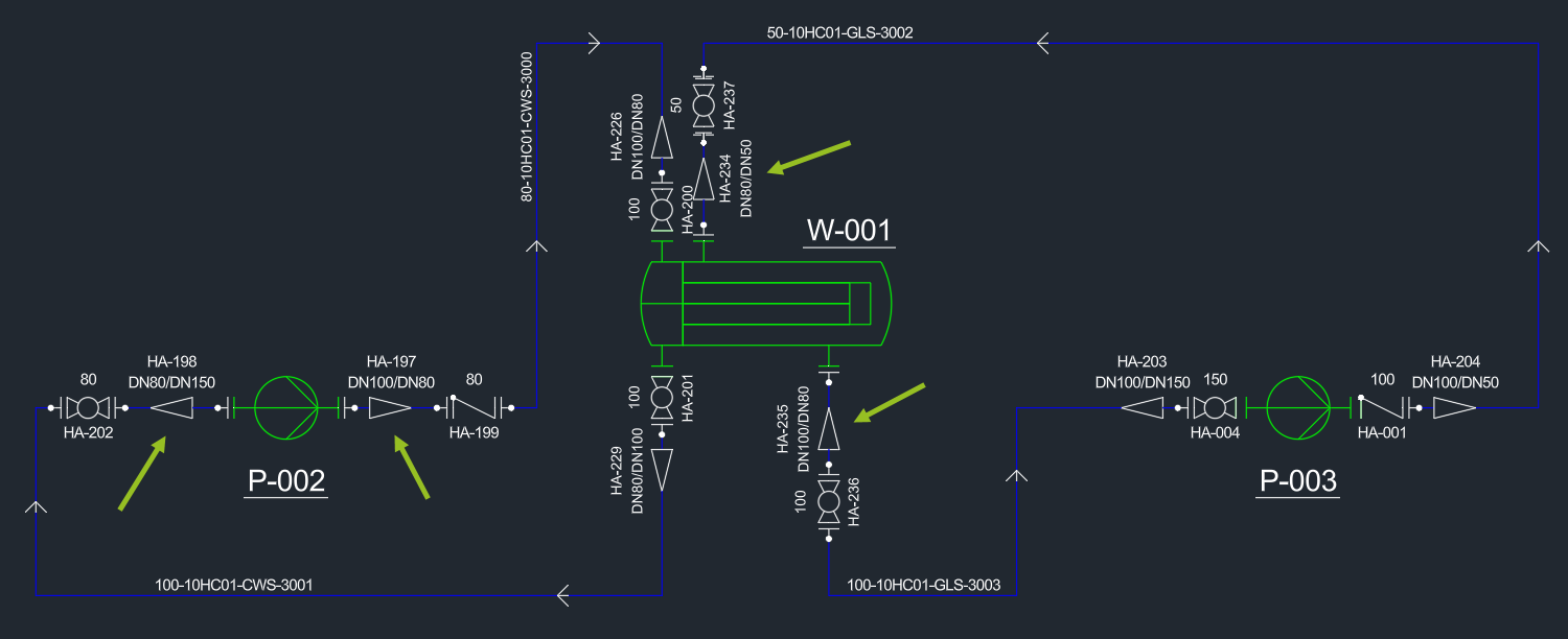 When inserting the reducer directly on the nozzle of the 3D pump, then Plant 3D got stuck. Now the Flange, Gasket, and Reducer are all linked.
